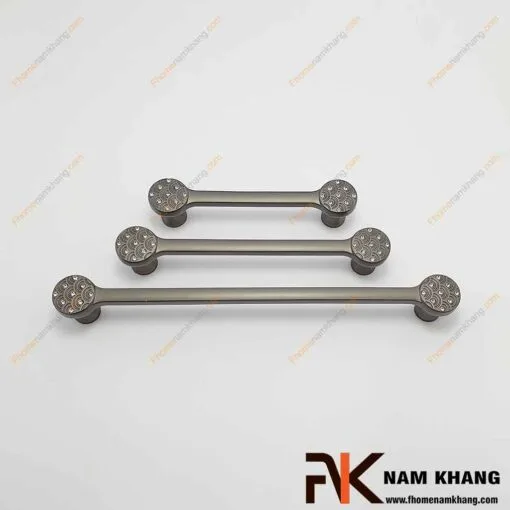 Tay nắm cửa tủ họa tiết màu xám NK286DC-X là sản phẩm có thiết kế bắt mắt với 2 đầu tay nắm dạng tròn bề mặt được chạm khắc tinh xảo đính pha lê, tạo nên sự sang trọng và đẳng cấp.